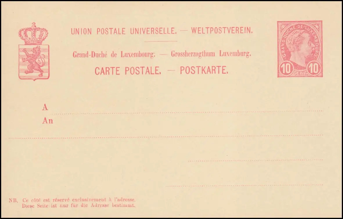 Luxembourg Carte postale P 54 Grand-Duc Adolf 10 C. inutilisé