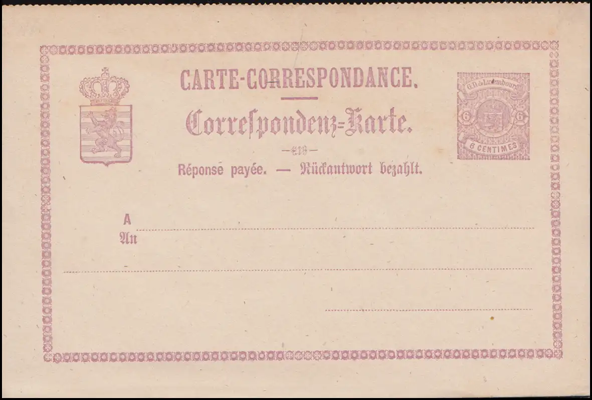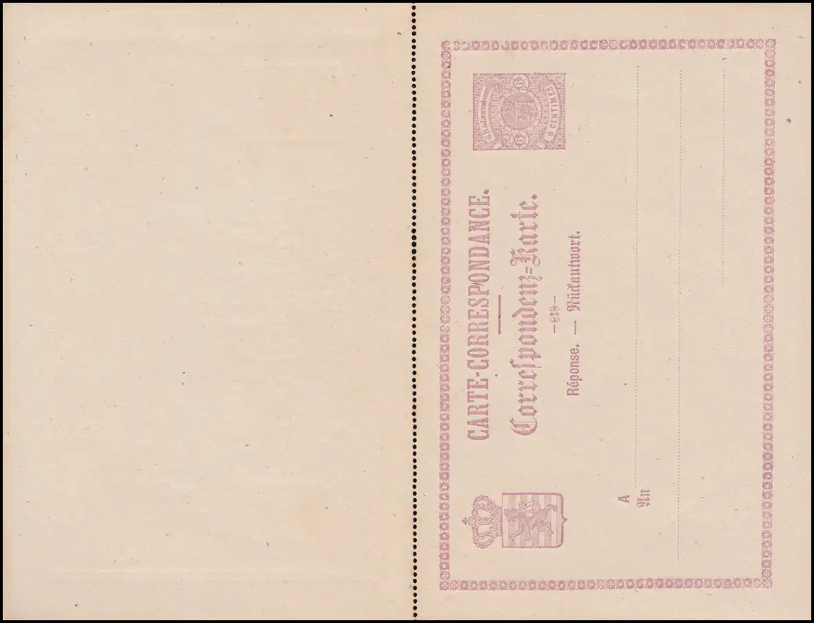 Luxembourg Carte postale P 6 Armoiries en cercle Carte double 6/6 C., non utilisée **
