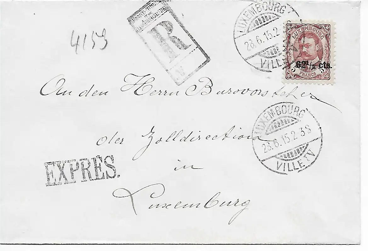 Luxembourg - lettre recommandée, 1915 à la direction des douanes