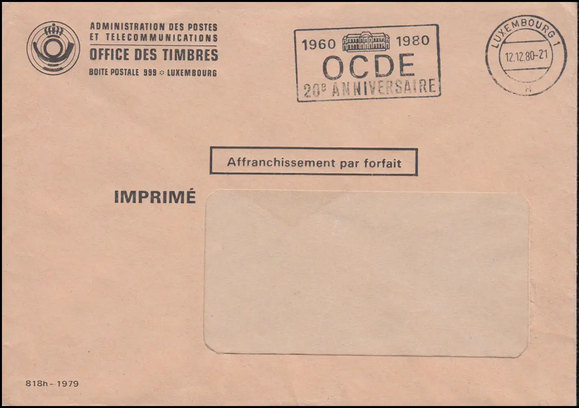 Luxembourg: dossier imprimé du ministère des postes avec publicité O 20 ans OCDE 12.12.1980