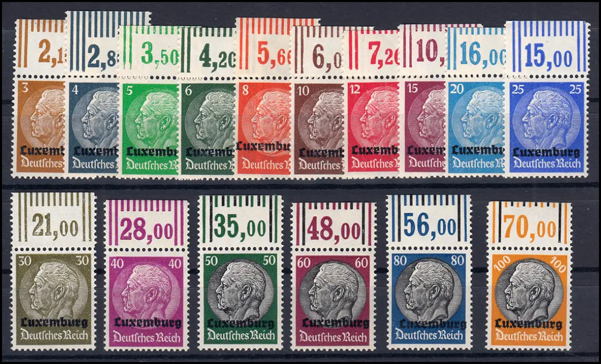 Luxemburg 1-16 Hindenburg, 16 Werte komplett, Satz Oberrand ungefaltet **