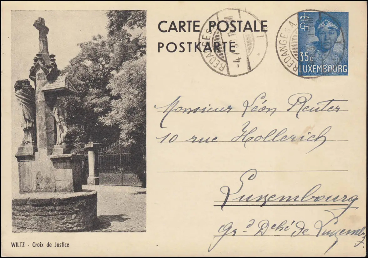 Luxembourg Carte postale P 114b Charlotte: Wiltz, REDANGE cf. 4.7.1938