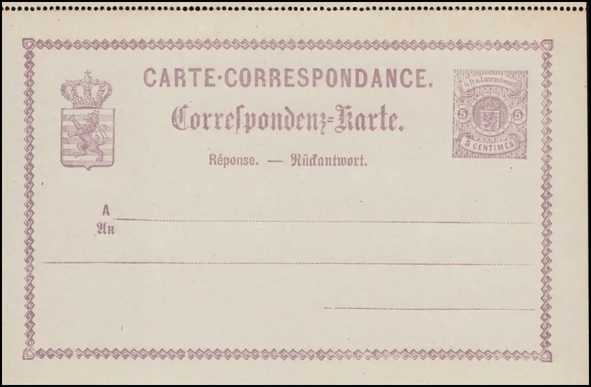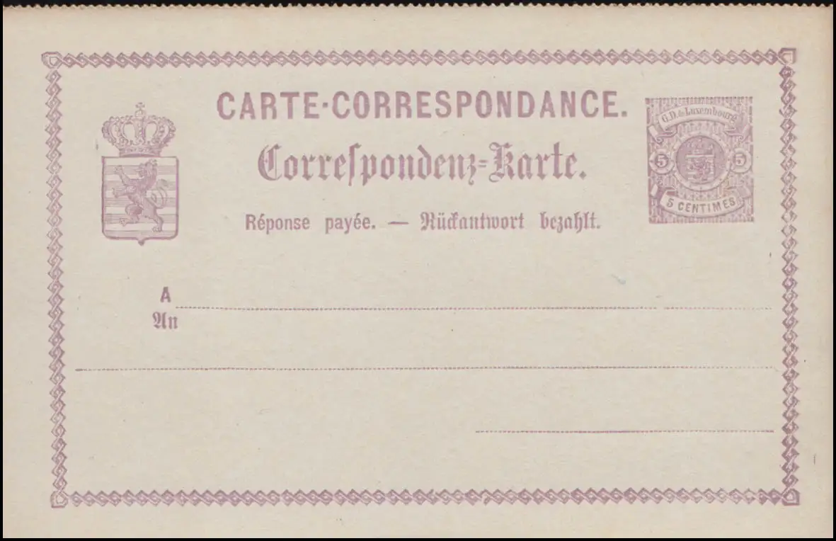 Luxembourg Carte postale P 10 armoiries en cercle 5/5 C. violet, non utilisé