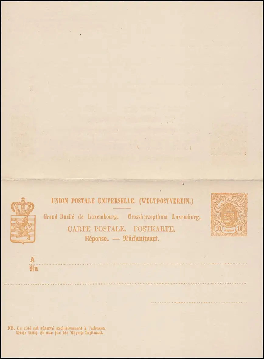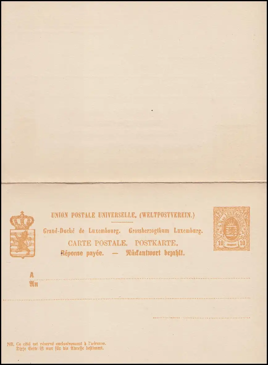 Luxembourg Carte postale P 34 Armoiries dans l'oval 10/10, bord supérieur plié, non utilisé