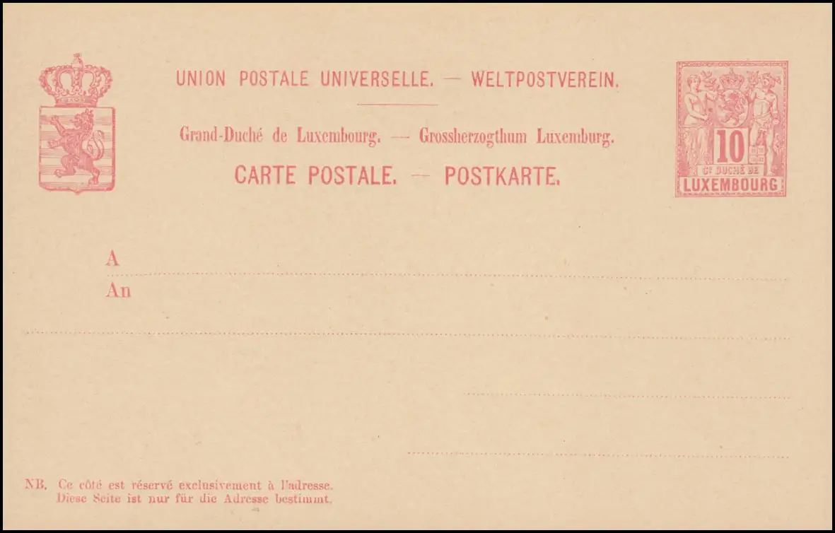 Luxembourg Carte postale P 50II Allegorie 10 C., 139x90, non utilisée