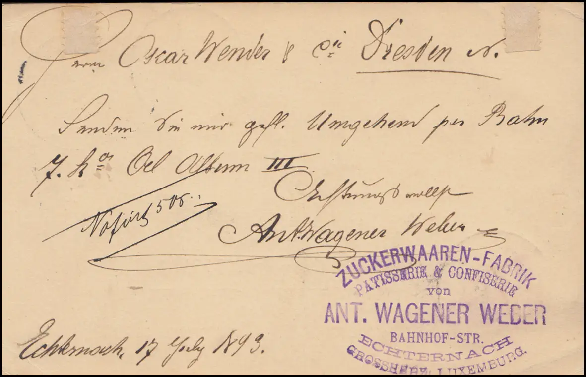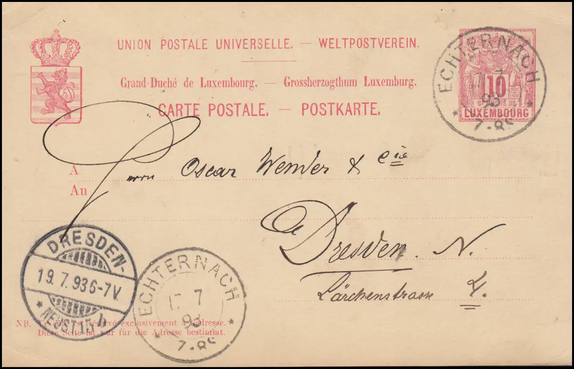 Luxembourg Carte postale P 50II ENTRÉE 17.7.1893 vers DRESDEN-NEUST. 15b 19.7.93