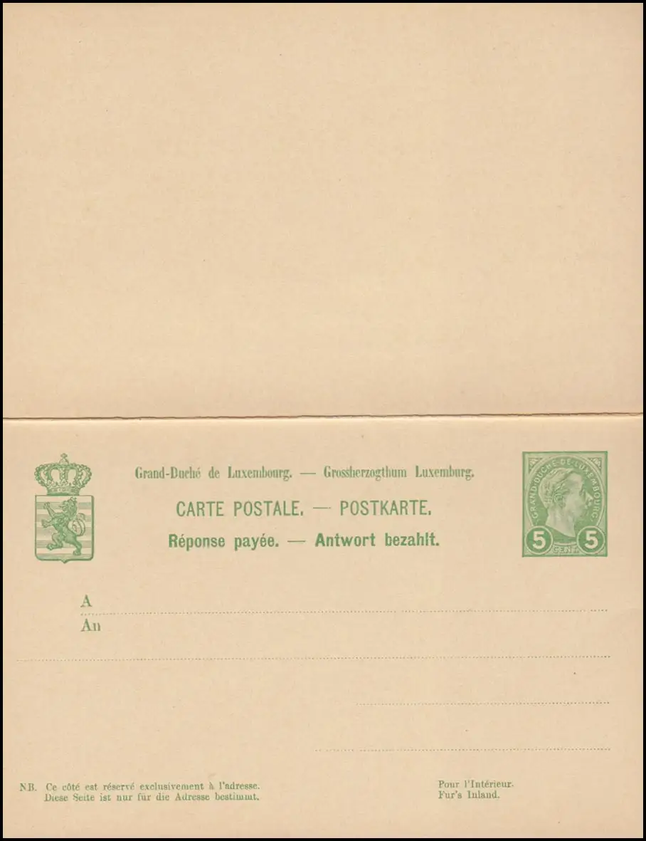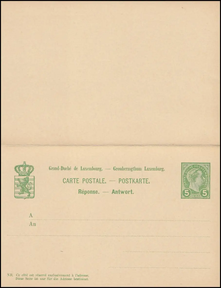 Luxembourg Carte postale P 55 Grand-Duc Adolf Carte double 5/5 C. non utilisée