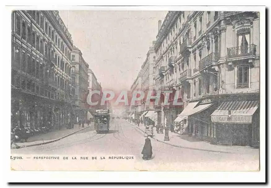 Lyon Cartes postales Perspective de la rue de la Republique (tramway) (CAfe Riche)