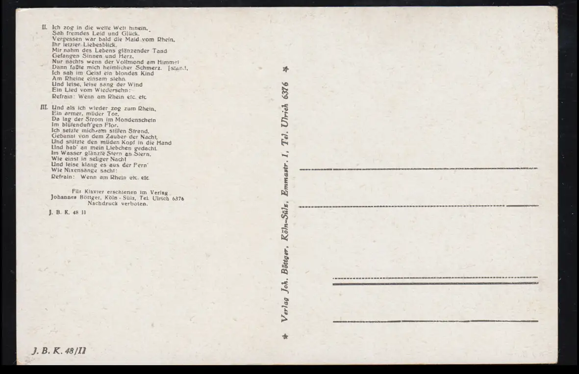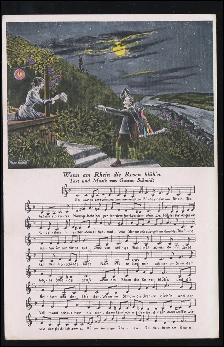 Lyrique AK chansons folkloriques avec des notes: Quand sur le Rhin fleurissent les roses, inutilisé