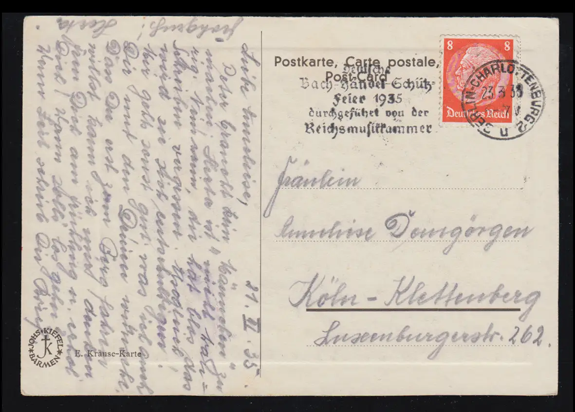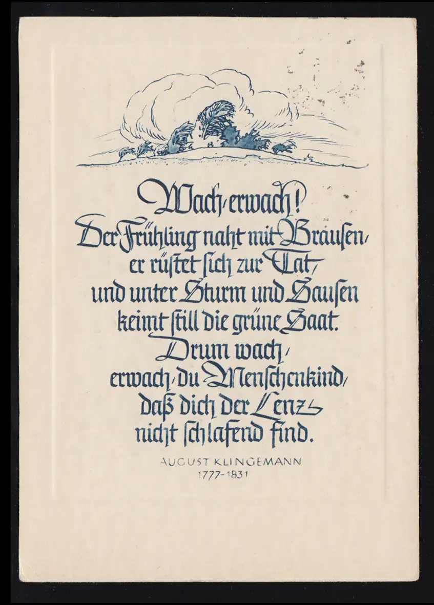 Lyrique AK August Sonnellmann: éveil, réveille-toi! BERLIN-CHARLOTENBURG 23.3.1935