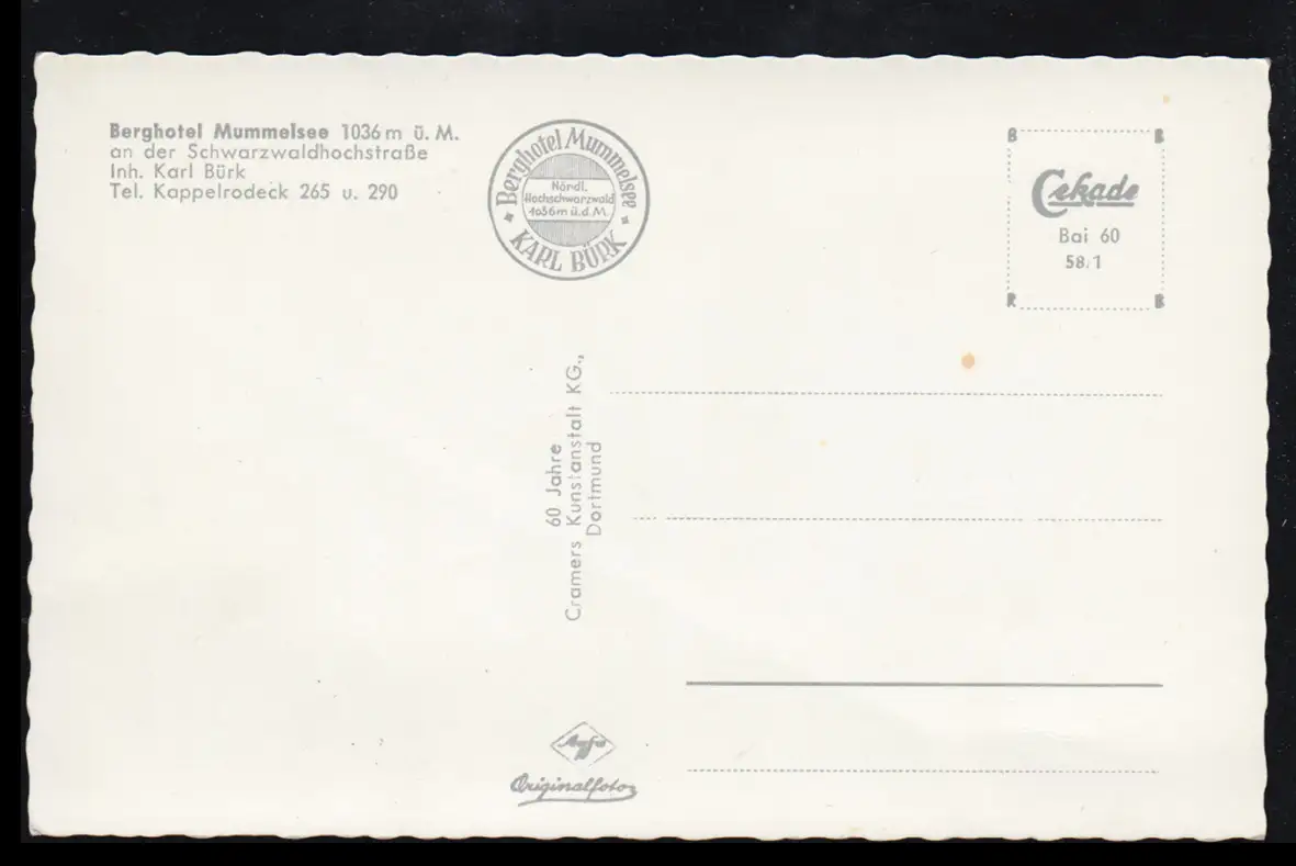 Lyrique AK Berghotel Mummelsee Haut-noir Forêt La Sage du Mommmelee, inutilisé