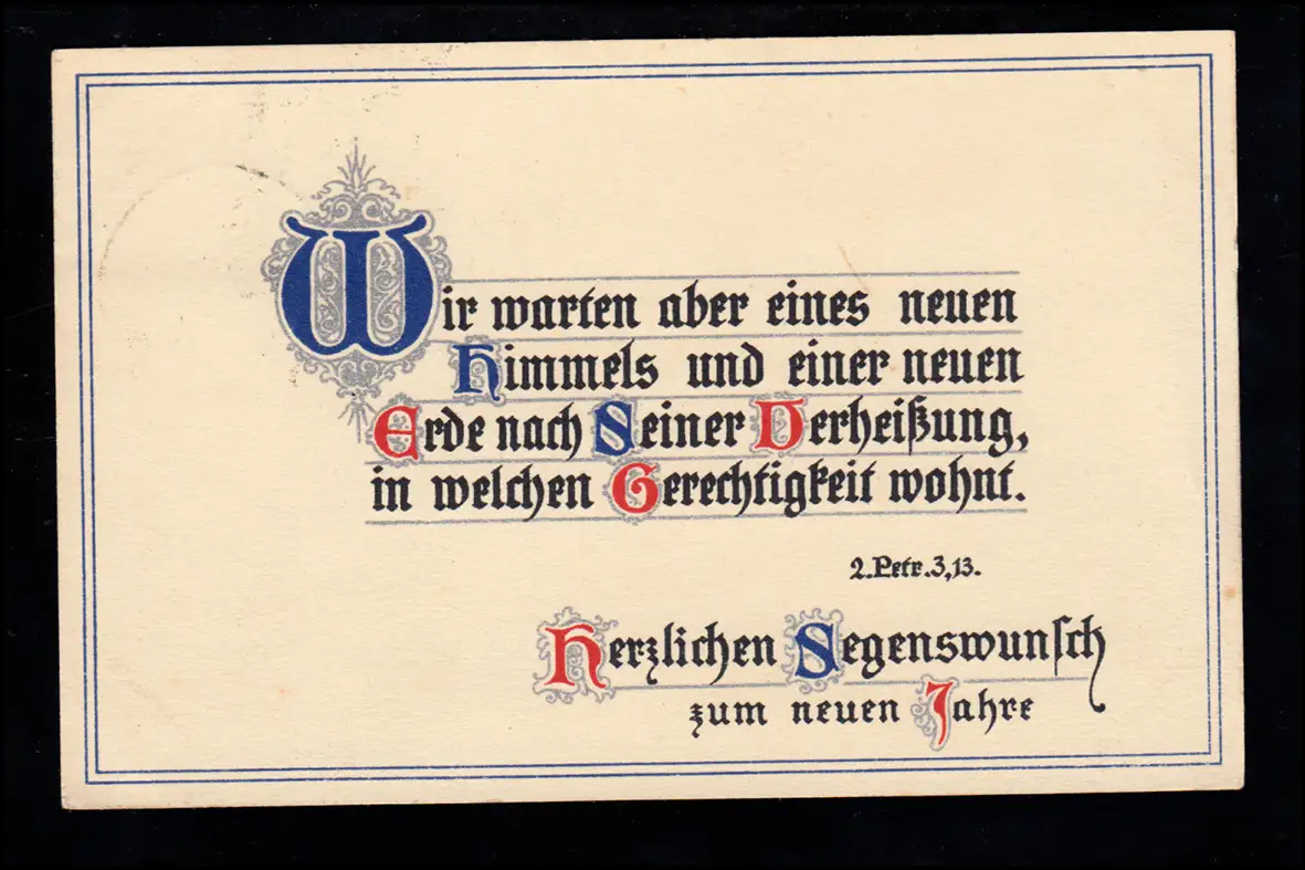 Lyrique AK Bible citation 2. Apôtre Pierre 3.13. Terre avec justice, 31.12.1924
