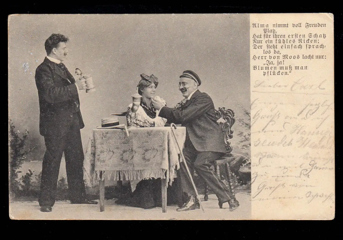 Lyrique-AK Jalousie Poème Le rire de M. Moos, BERLIN 17.1.1907