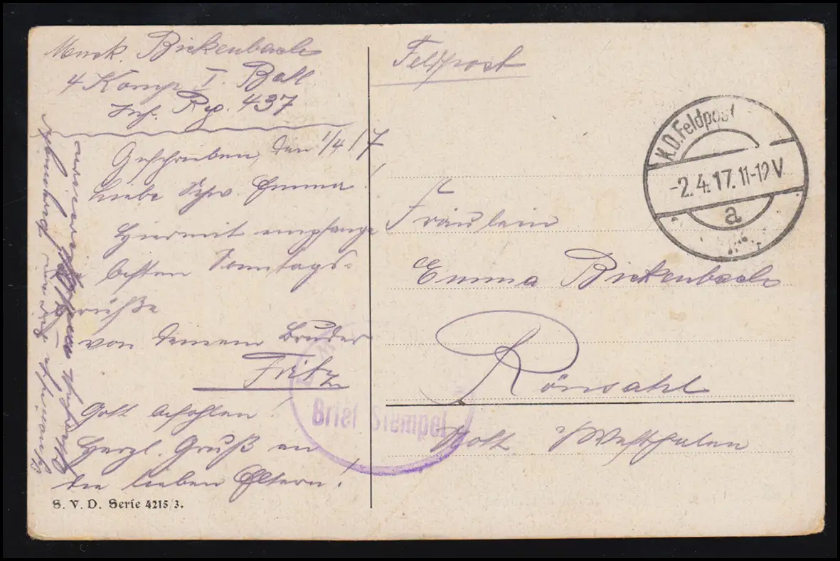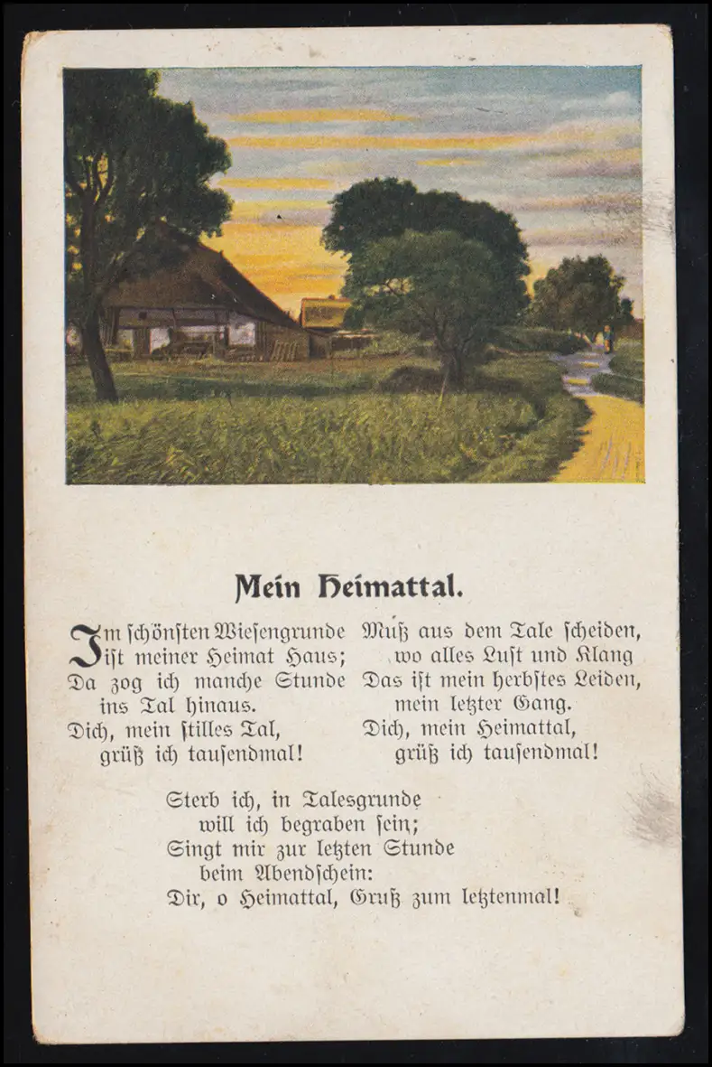 Lyrique AK Paysage Idylle Volkslied: Ma vallée natale, Feldpost 2.4.1917