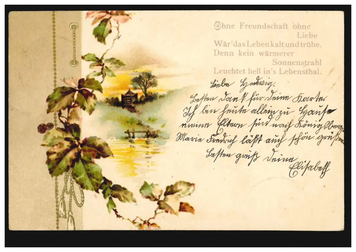 Lyrique AK Paysage Périple Poème Amour Amitié, SCHÖNFLIESS 1900