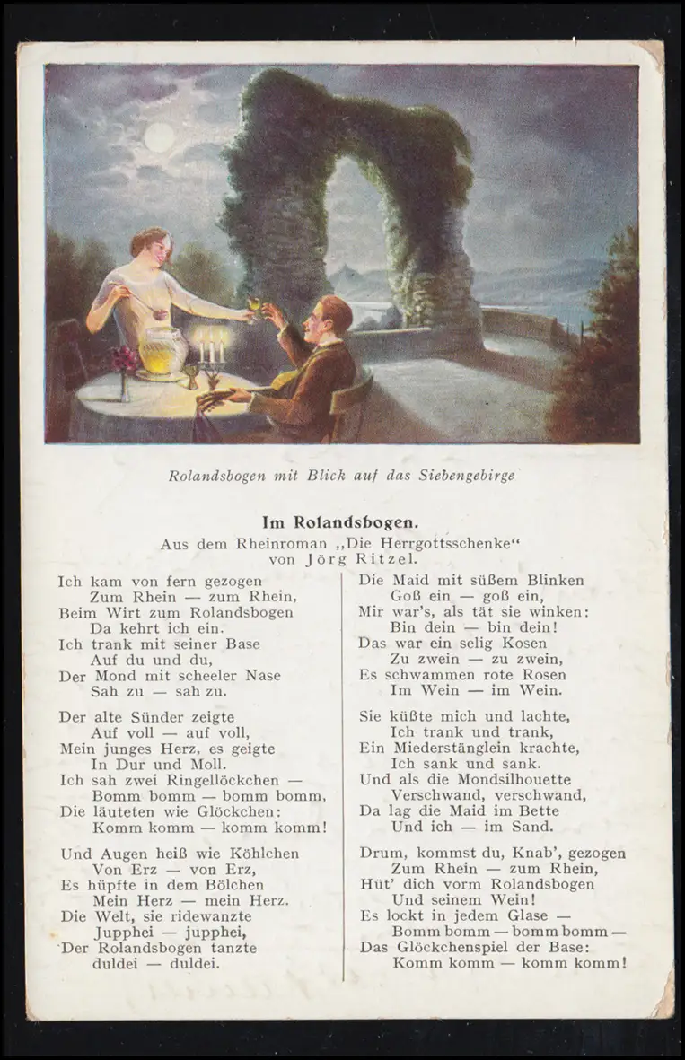 Lyrique AK Rhin Lieder numéro 1: Dans l'Arc de Roland, SSt RÜDESHEIM 30.7.1927