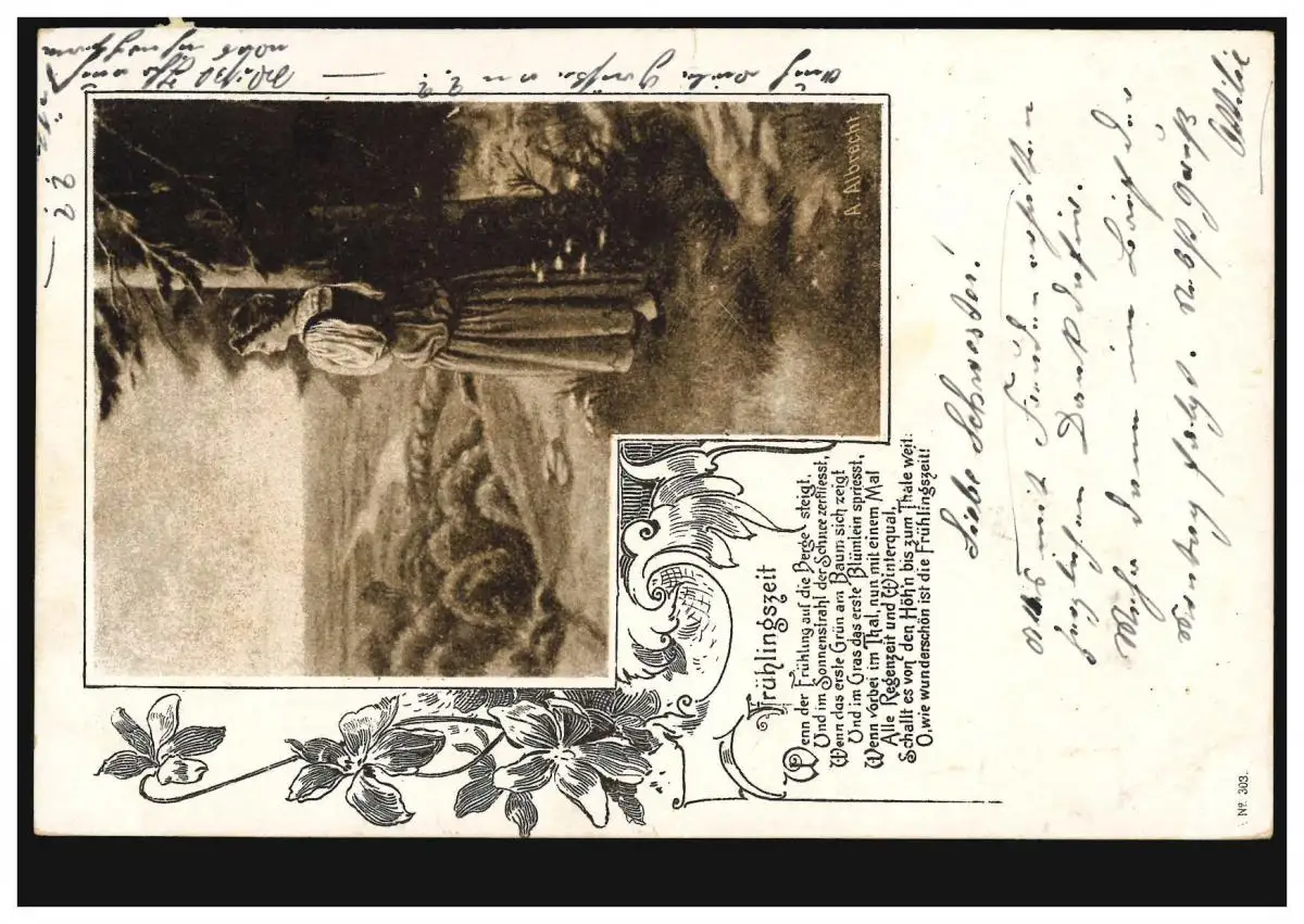 Lyrique AK femme à la périphérie de la forêt avec vue sur la vallée, poème Printemps, GERSAU 30.8.1900