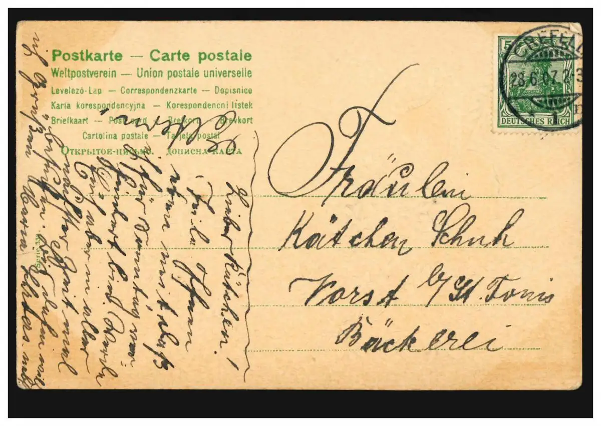 Lyrique AK poème Pas le temps - Fleurs, de CREFELD 28.6.1907 par Prest