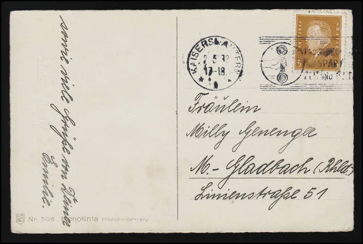 M & B Nr. 506 Photo AK Monotinta, Astern in Glas, KAISERSLAUTER 2.5.1932