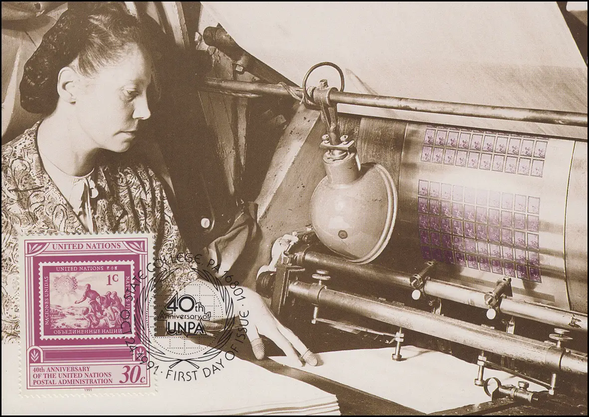 40 ans d'administration postale des Nations Unies (UNPA), avec la vedette spéciale de premier jour "STATE COLLEGE, PA 16801" Numéro de catalogue: MK4 Examen: original Référence produit: 62274000402700>Attention: Cet article est ou a été répété. L'illustration montre un de ces articles en un exemplaire. La marque fournie a uniquement les caractéristiques indiquées dans la description et peut donc différer de l'image. Toutefois, en particulier pour les marques marquées, nous nous efforçons de fournir l ' article illustré. Si cela vous est demandé, veuillez nous le faire savoir.