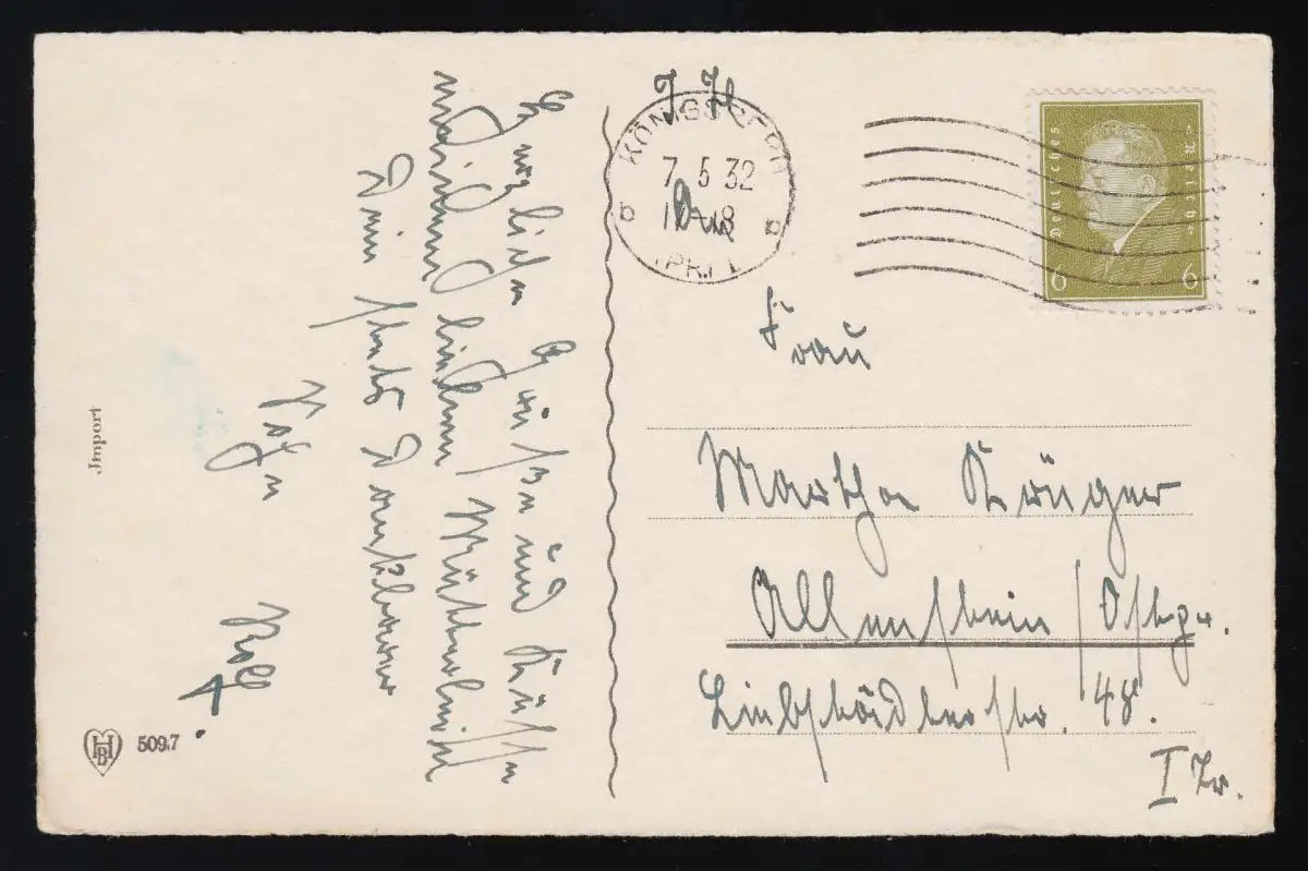 Ma mère, ma mère tu as tous les soucis, Toutes les douleurs, Königsberg 7.5.1932