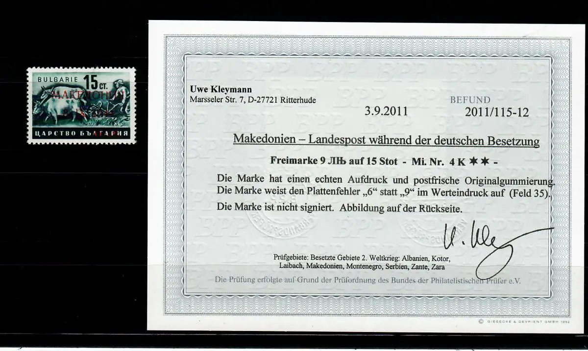 Macédoine Min. 4 K, erreur de plaque, **, post-frais, résultat BPP