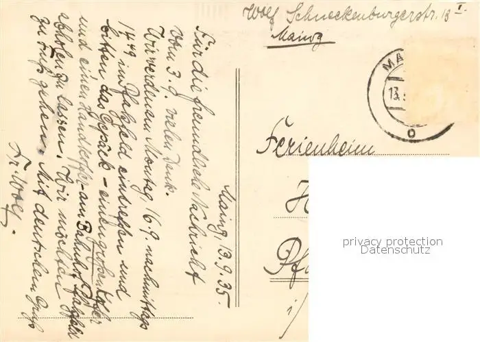 Mainz_Rhein Panorama Zeichnung Mainz Rhein postalisch gelaufen 1935 Erhaltung siehe scans [WerneD78] WernPID7