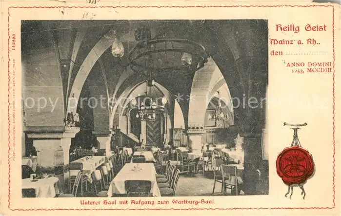 Mainz_Rhein Unterer-Saal mit Aufgang zum Wartburg-Saal Mainz Rhein postalisch gelaufen 1910 Erhaltung siehe scans [LiesaD40] LiesID40