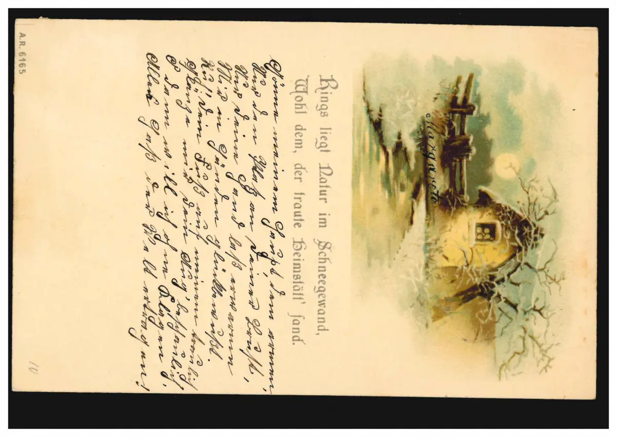 Maison AK avec Weiher en hiver, poème: Rings est la nature dans le vêtement de neige...,1899