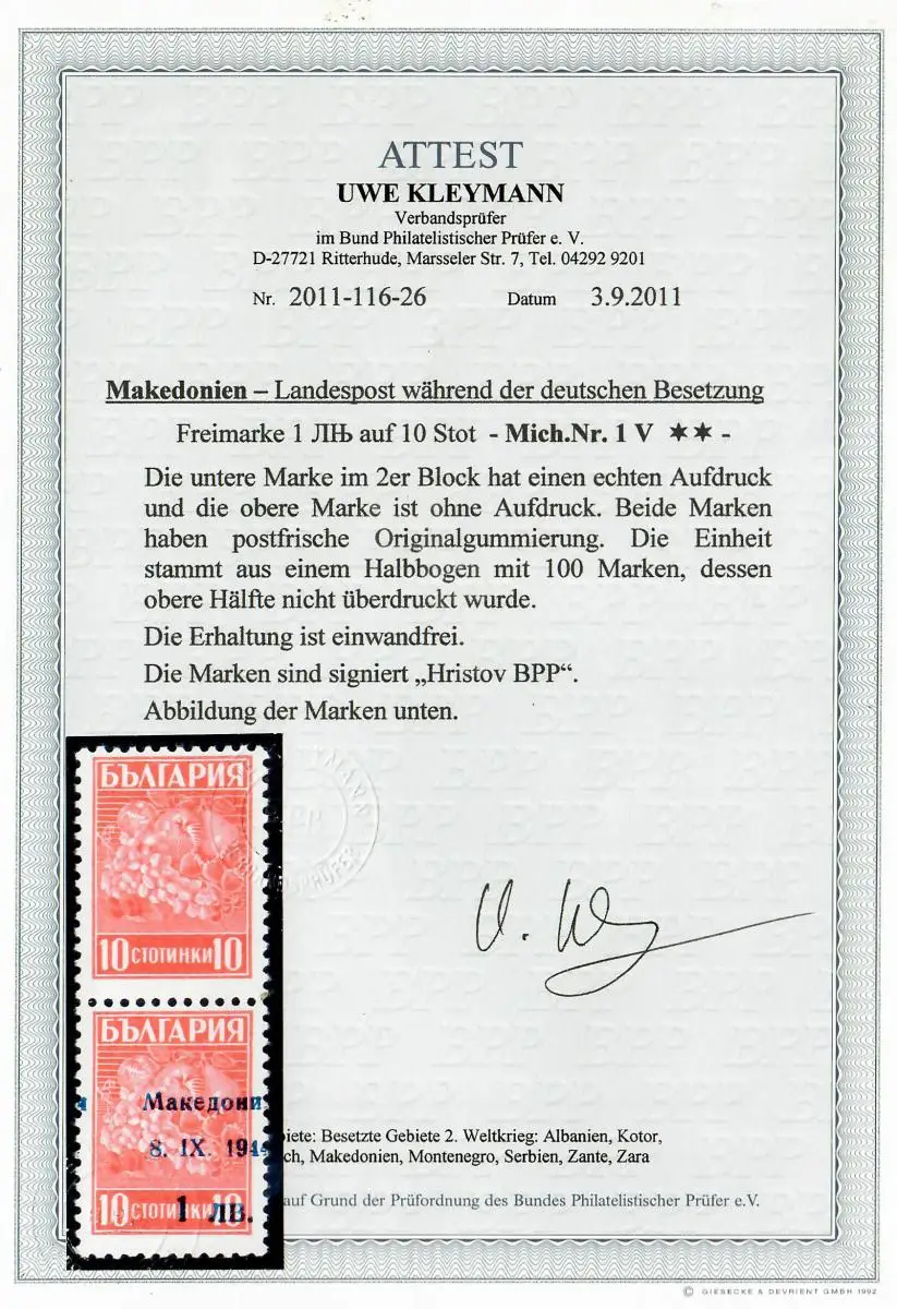 Macédoine Min. 1 V, avec/sans inscriptions, **, frais, BPP Attest
