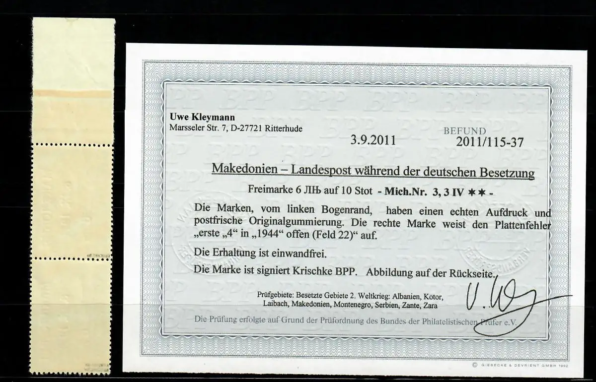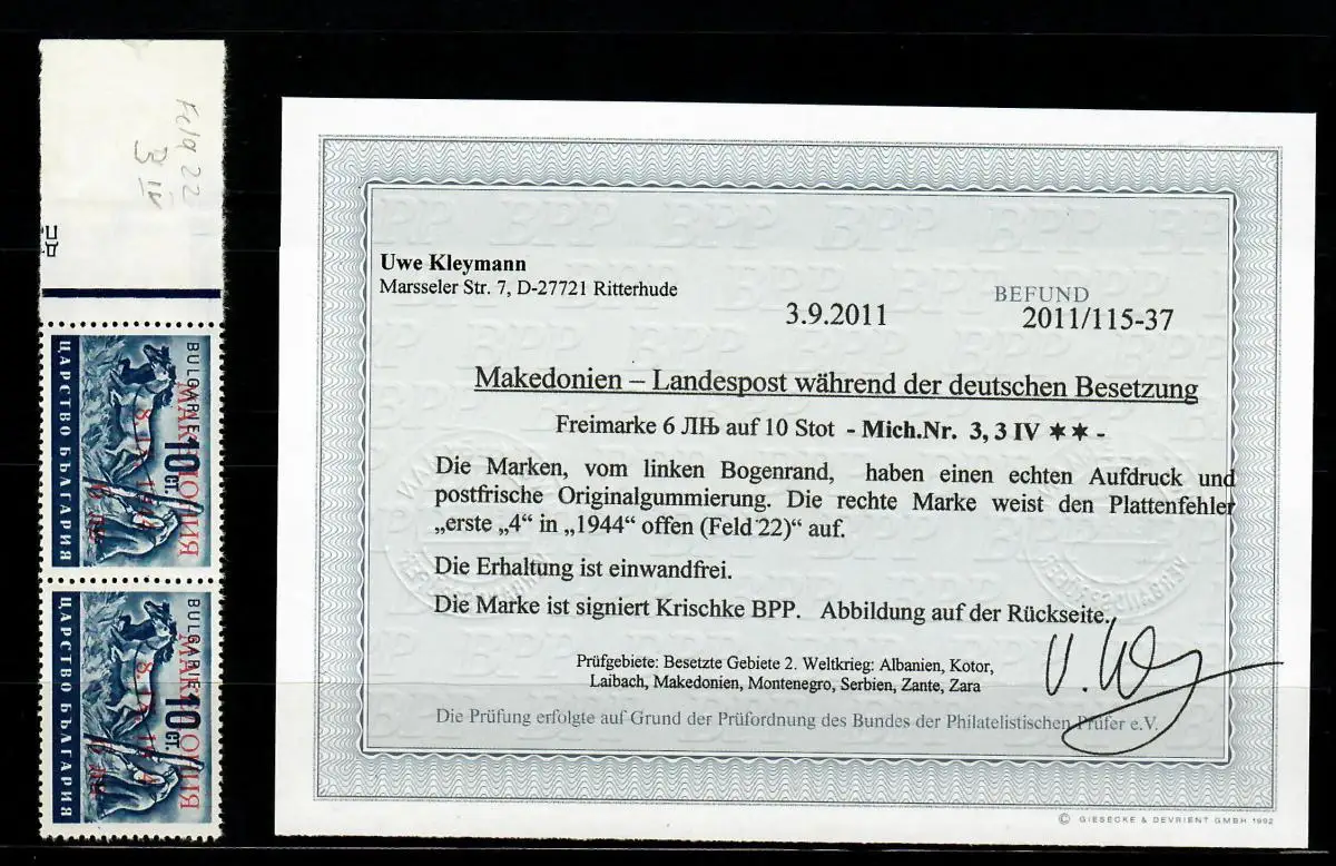 Macédoine Min. 3, 3 IV Erreur de plaque dans la paire horizontale **, post-frais, résultat BPP