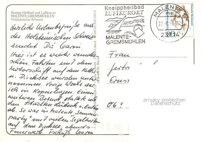 Malente-Gremsmuehlen Promenade Kirche Windmuehle Strand Bootsanlegestelle Malente-Gremsmuehlen postalisch gelaufen 1996 Erhaltung siehe scans [WerneD78] WernPID7
