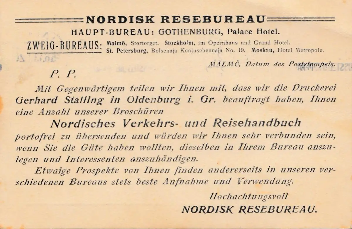 Exposition baltique Malmö 1913 à Francfort: Agence de Voyage Nordique