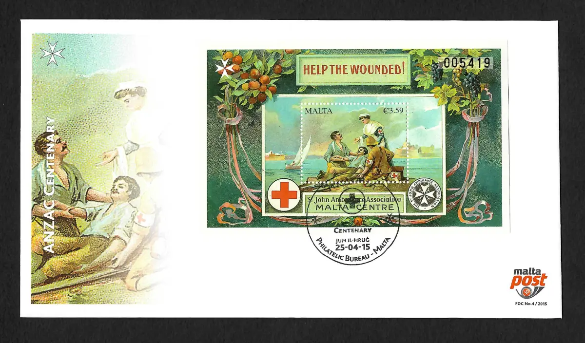 Malta: 100 Jahre ANZAC Tag, Help the Wounded, FDC