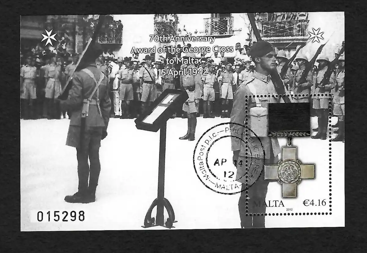 Malte: 70e anniversaire de la cérémonie de remise de George Cross, 1942, #1711, bloc #52 cacheté