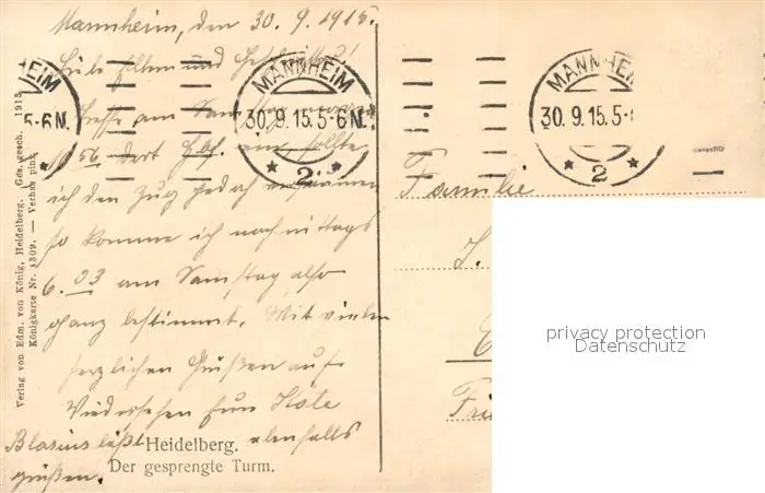 Mannheim Burgruine Mannheim postalisch gelaufen 1915 Erhaltung siehe scans [WerneD78] WernPID7