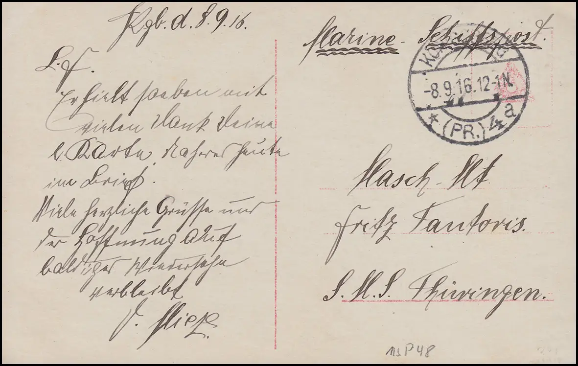 Poste navale à un marin sur SMS Thuringe, KÖNIGSBERG 8.9.1916
