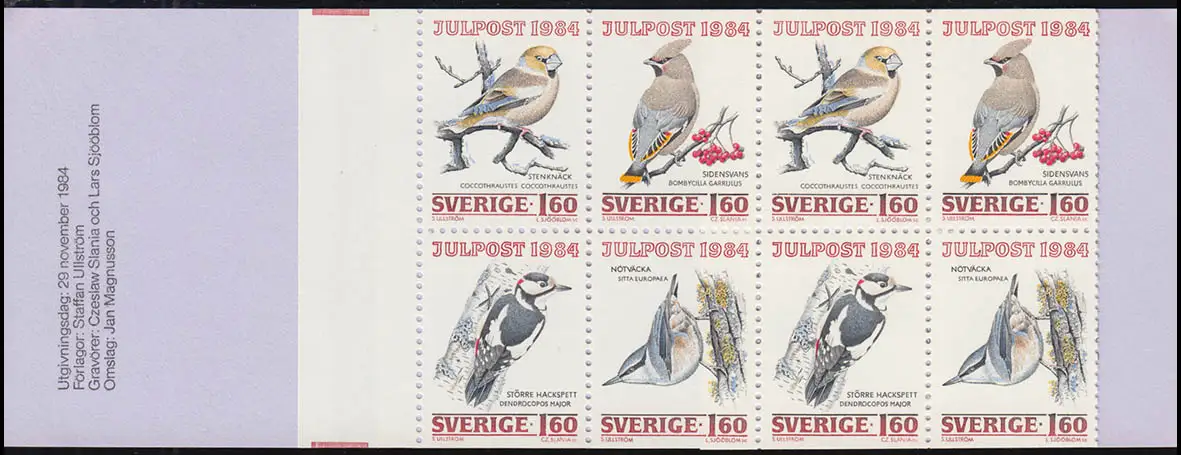 Carnet de marque 102 Noël - Oiseaux hivernants, avec FN 2 **