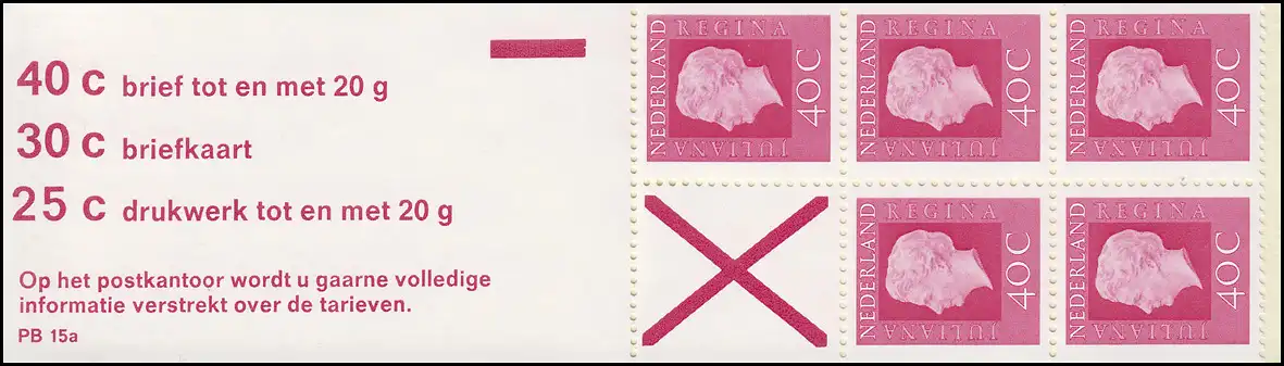 Cahiers de marque 16 Reine Juliane 1973 - 3 Tarifs et PB 15a, **