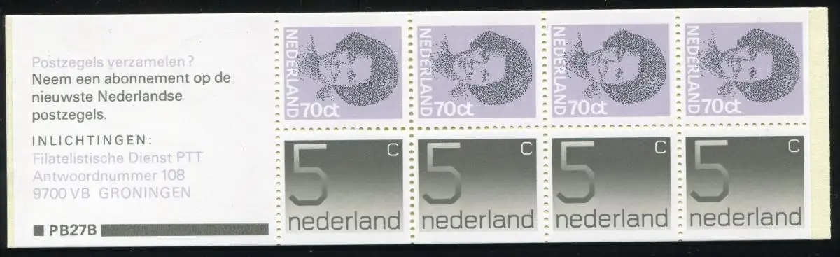 Carnets de marque 28 Beatrix et chiffre 1982 avec PB 27B, texte: E endommagé, **