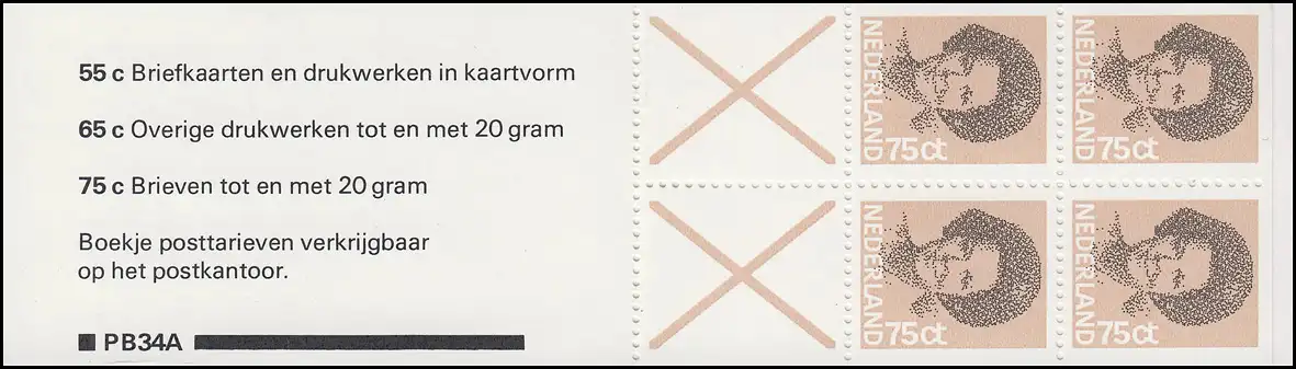 Carnets de marque 35 Reine Beatrix 1986 avec publicité 3 Tarifs et PB 34A, **