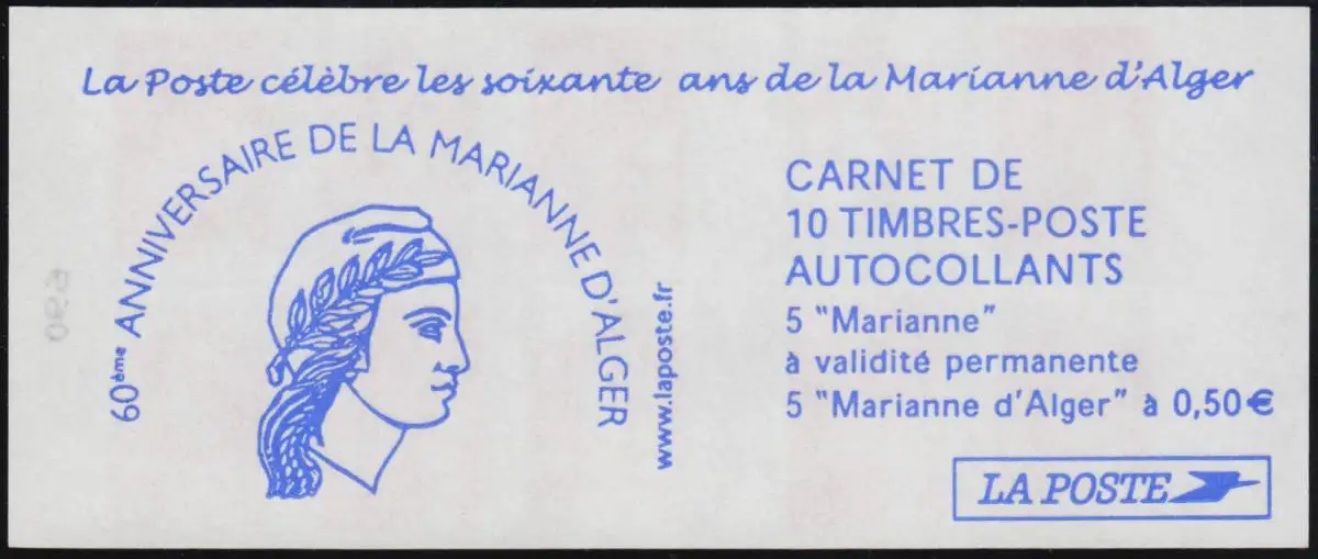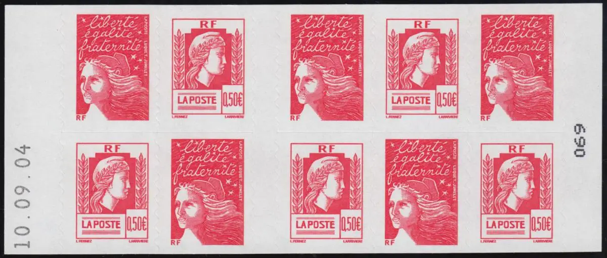 Carnets de marques 3558BcII+365 Marianne Luquet et d'Alger, date d ' impression 10.09.04 **