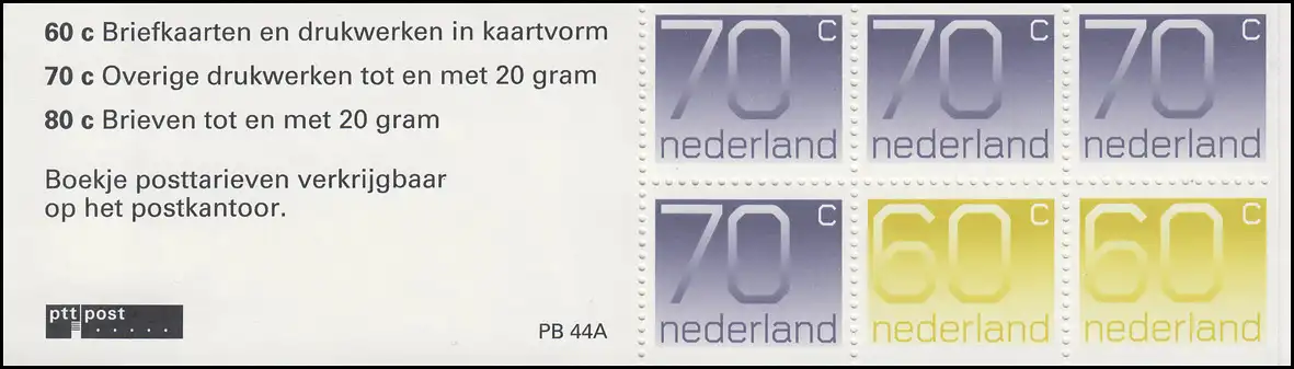 Carnets de marques 45 chiffres 1991 avec 3 tarifs et PB 44A, **