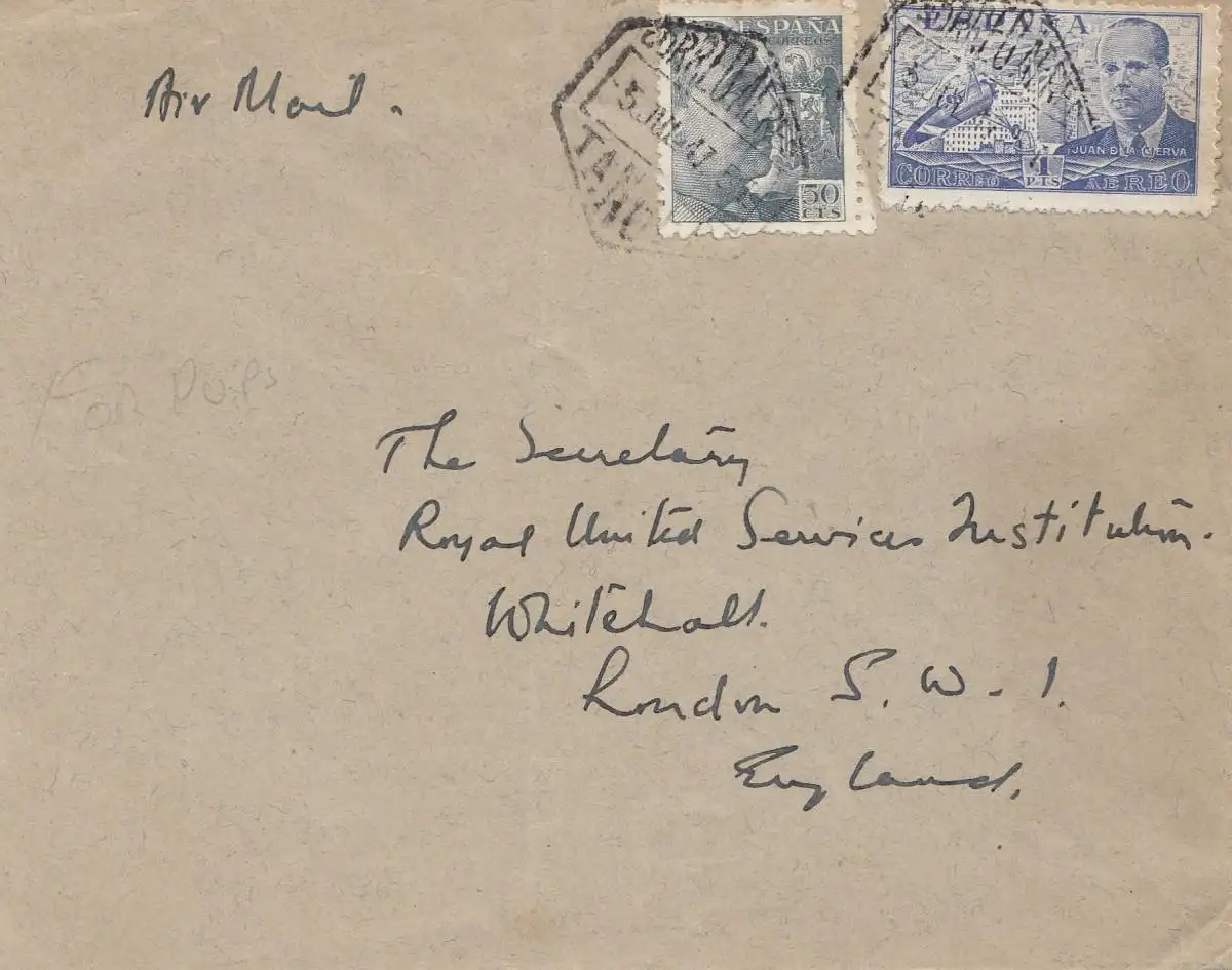 Maroc 1947: Tanger by air mail to Whitehall, Londres