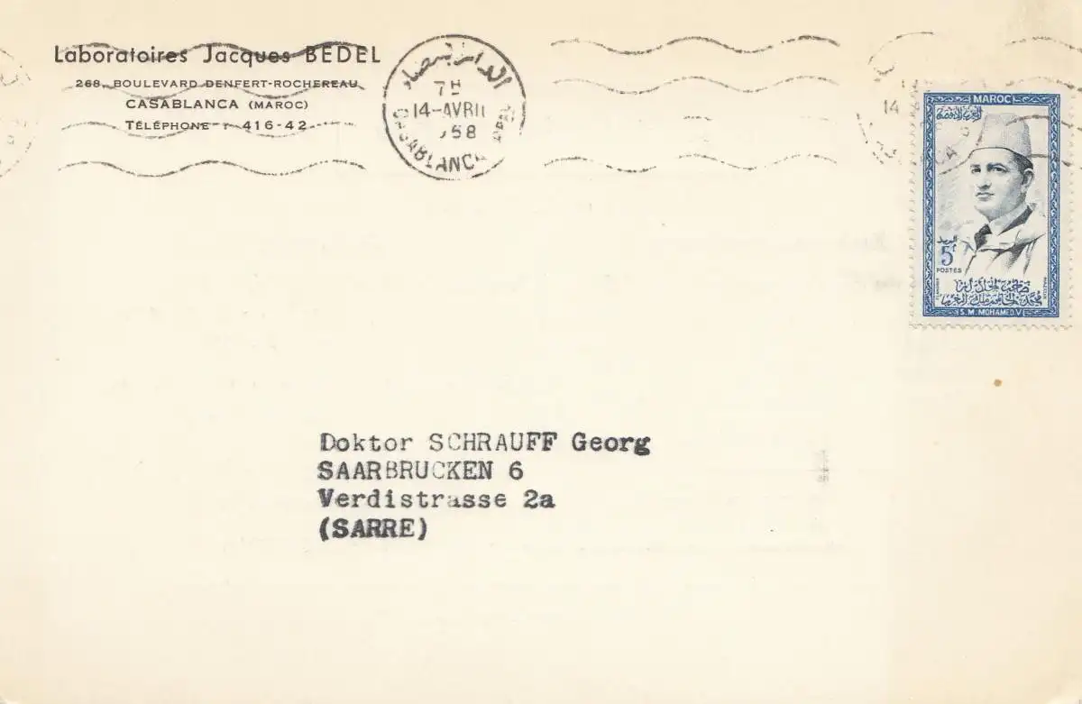 Maroc 1958: Casablanca to Sarrebruck; German text, Medicine