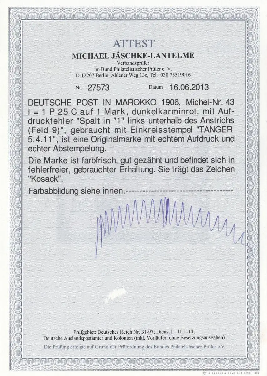 Maroc: numéro 43I, cacheté, Tanger, avec test photo BPP
