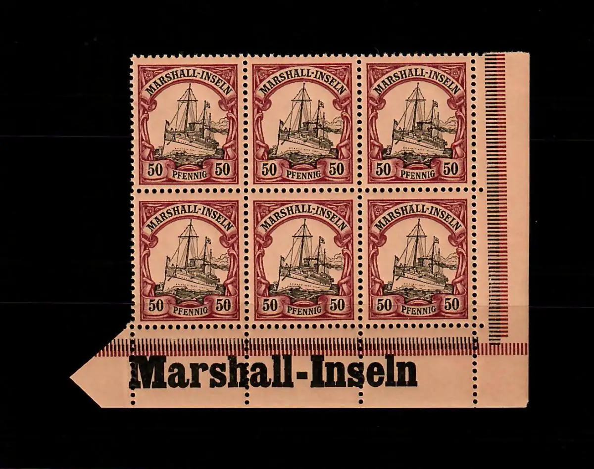 Îles Maréchaux: Mi Nr. 20, bloc de 6 avec inscription Eckrand, frais de port **