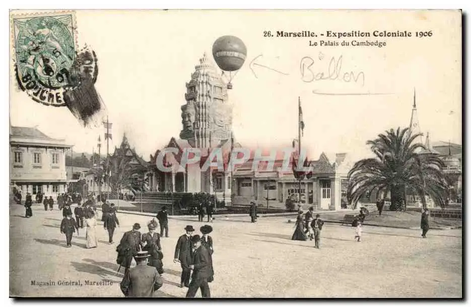 Marseille - Exposition Coloniale 1906 - Le Palais de Cambodge - Ballon - Cartes postales