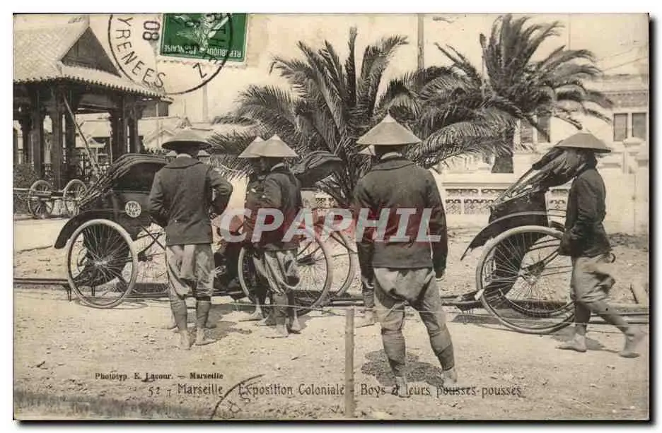 Marseille - Exposition Coloniale - Boys et leurs pousses pousses - Cartes postales