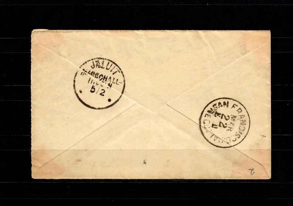 Voir Scan: 1890, lettre non course de correspondance du missionnaire J.H. Little de Kusaie/Caroline, rs. TrSt Jaluit, 5.2.90 et San Francisco, envoyée à son épouse à Jamesville / Wisconsin. Note d'entrée Received March 26/90, timbre T et L2 U.S. Charge/10 cent/to collect. Le Litte était stationné sur Kuseie par l'American Board of Commissioners for Foreign Mission & Hawaiian Evangelical Association. Cette société de mission a maintenu le bateau Morning Star deux fois l ' année du contact entre les îles (entre autres Jaluit et KuSaiie). Rareté exceptionnelle dans l l\'état immaculé de la colonie primitive des Carolines espagnoles et des Îles Marshall allemandes Art.N°: 5002056 Examen: original Numéro d\ 000000020556